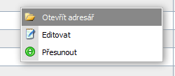 V přehledech (dokumentů, výrobků v e-shopu, obrázků v galerii atd.) je možné použít pravé tlačítko myši pro vyvolání kontextového menu s nabídkou relevantních funkcí, pomocí nichž je možné rychle provádět různé akce s vybranou položkou.